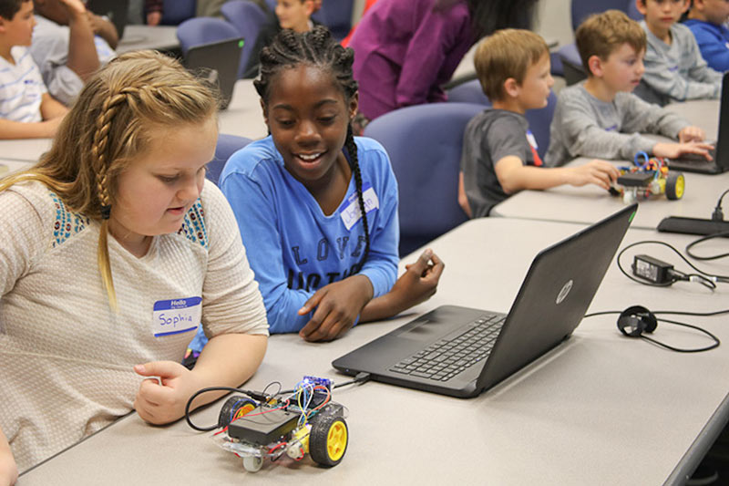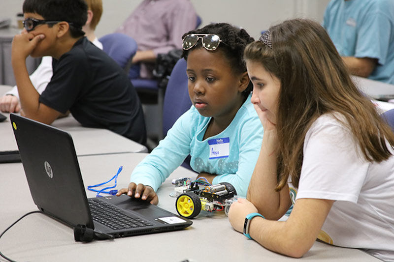 In February, Science Saturday was about “Programming Robots”. Dr. Lakshmi Prayaga of the University of West Florida led the presentation along with several of her students. Attendees worked in pairs, sharing a laptop while getting an introduction to the art and science of programming robotic vehicles. IHMC appreciates the effort and enthusiasm of Dr. Prayaga and her team in presenting such an enjoyable and exciting STEM topic. This season of Science Saturdays is sponsored by Gulf Power and by the Escambia County Sherrif’s Office with State Law Enforcement Trust Fund Monies.